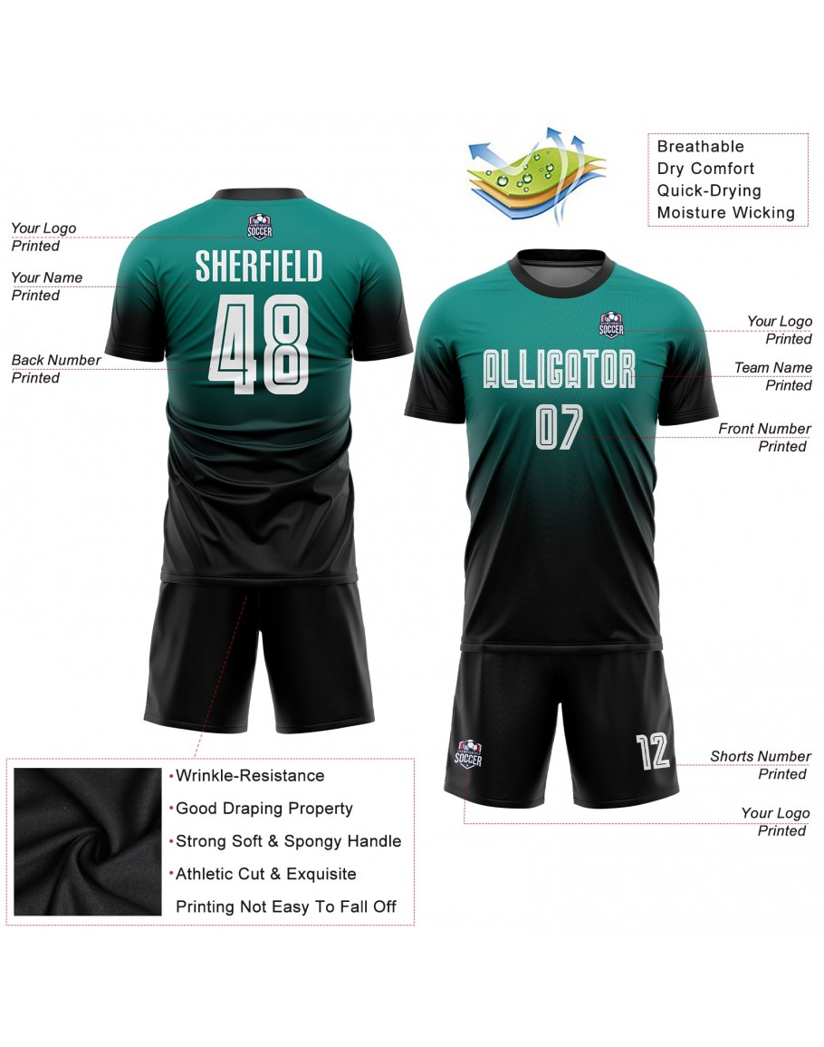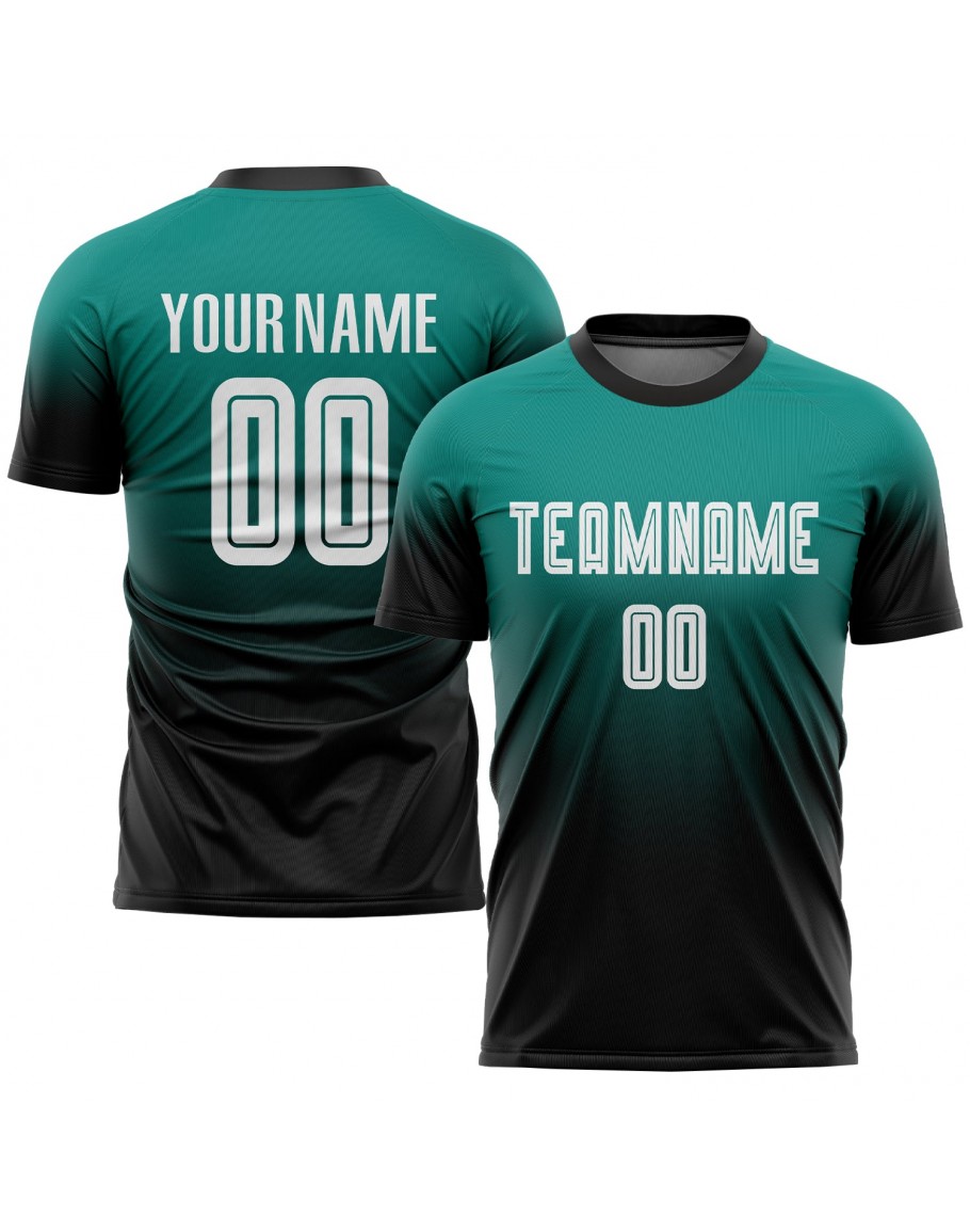 Best Pro Custom Aqua White-Black Sublimation Fade Fashion Soccer Uniform Jersey